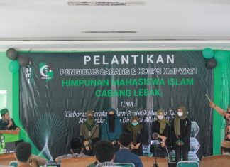 DENGAN mematuhi Protokol Kesehatan, sebanyak 9 Pengurus Himpunan Mahasiswa Islam Majelis Penyelamat Organisasi (HMI-MPO) , dan 5 Pengurus Korps HMI-Wati (Kohati) Cabang Lebak periode 2020/2021 resmi dilantik.