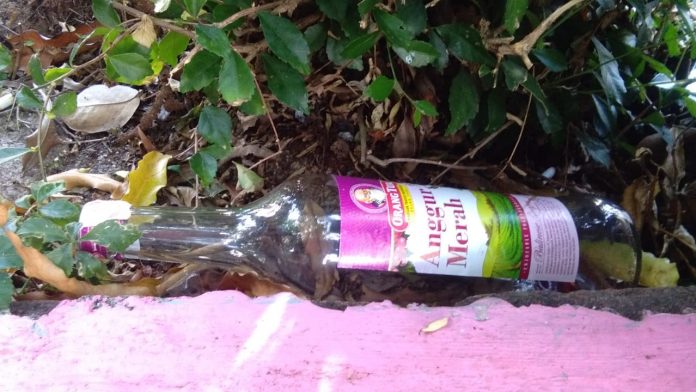 “Itu mah bukan pemandangan yang aneh, tiap pagi juga suka ada aja bekas botol Miras,” kata Dendi warga sekitar, Senin (22/07/2019).
