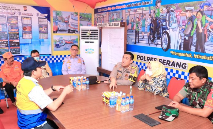 Kapolres Serang AKBP Yudha Satria menuturkan, Bupati Serang bersama jajaran Forkopimda mengecek pos pengamanan dan pos pelayanan Natal dan Tahun Baru 2023 di wilayah Ciujung dan Cikande. “Alhamdulillah, Ibu Bupati memberikan bingkisan yang bermanfaat. Semoga bisa memberikan semangat kepada anggota yang memberikan pelayanan dan pengamanan,” ujarnya.
