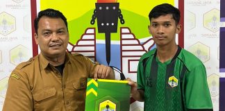 Camat Cikedal Berikan Bantuan Bola Sepak Untuk Pemuda Desa Karya Utama