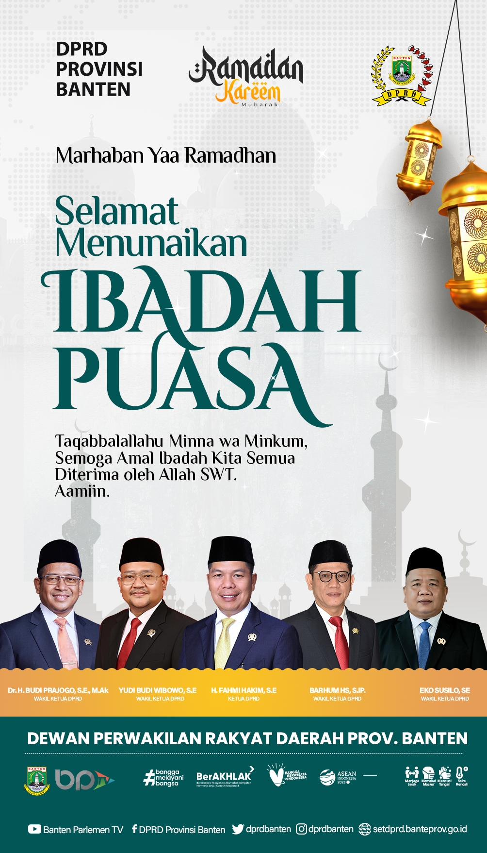 DPRD Provinsi Banten Mengucapkan Selamat Menunaikan Ibadah Puasa Penulis Tuntas Media - Maret 1, 2025 60 0 Berbagi di Facebook Tweet di Twitter tweet BERITA TERKAITDARI PENULIS Arif Hamdi Pimpin Cabor Angkat Besi Kota Serang 2026-2030 Warga Bangkonol Serahkan BBM Kepada Pengurus UPTD TPSA Ruko Berstatus HGB Bisa Jadi Hak Milik, Simak Syarat dan Ketentuannya Kementerian ATR/BPN Jadi _Supporting_ Utama PSN Pelabuhan Palembang Baru Tanjung Carat Hadiri Halalbihalal MAPPI, Wamen Ossy Ingatkan Pentingnya Nilai Integritas dalam Profesi Penilai