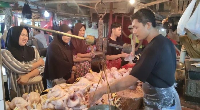 “Hari ini, harga daging ayam potong sudah 38 ribu per kilogram, kalau harga normal kita biasa menjual 33 ribu rupiah per kilogramnya. Mungkin ini karena faktor mau puasa ya,” terangnya, Jum’at (28/2/2025).