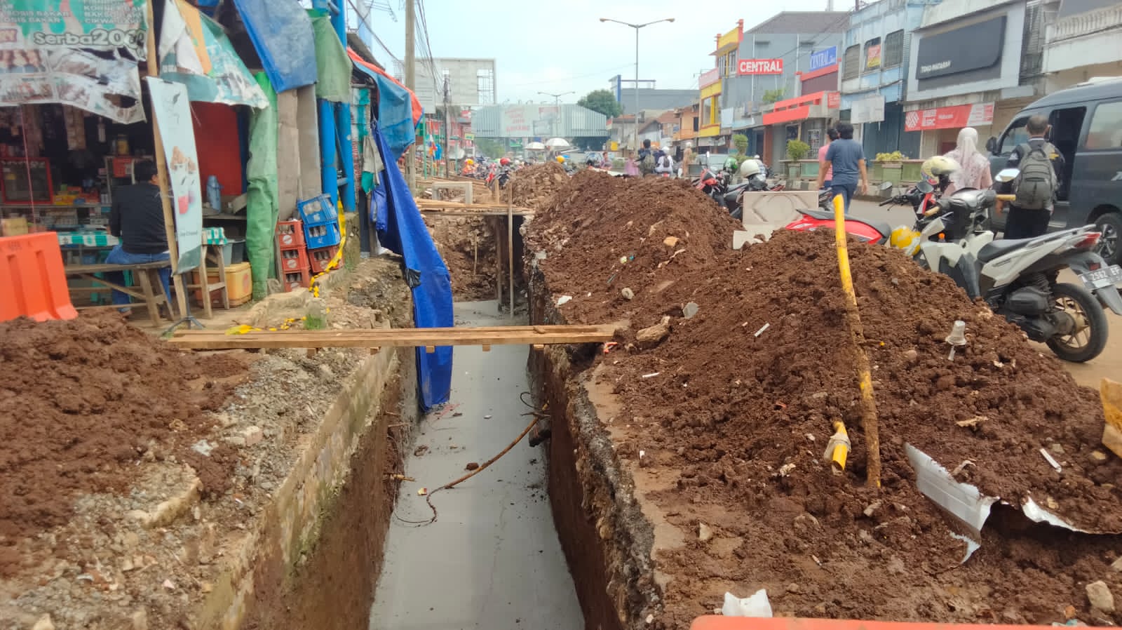 “Seharusnya sebelum membangun, pelaksana berkomunikasi dengan para pedagang di Pasar dan sebelum digali itu drainase, pelaksana juga seharusnya mempersiapkan jembatan sementara agar aktivitas jual beli tidak terganggu, nah ini mah para pedagang yang bikin sendiri jembatannya,” bebernya.