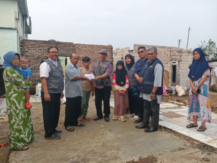 MUSYAWARAH Kerja Kepala Sekolah Tingkat Sekolah Menengah Pertama (MKKS SMP) Pandeglang, menyalurkan bantuan kepada warga yang rumahnya terkena musibah kebakaran di kampung Kuranten, Kelurahan Saruni, Kecamatan Majasari, Kabupaten Pandeglang pada Kamis (31/72025) lalu.