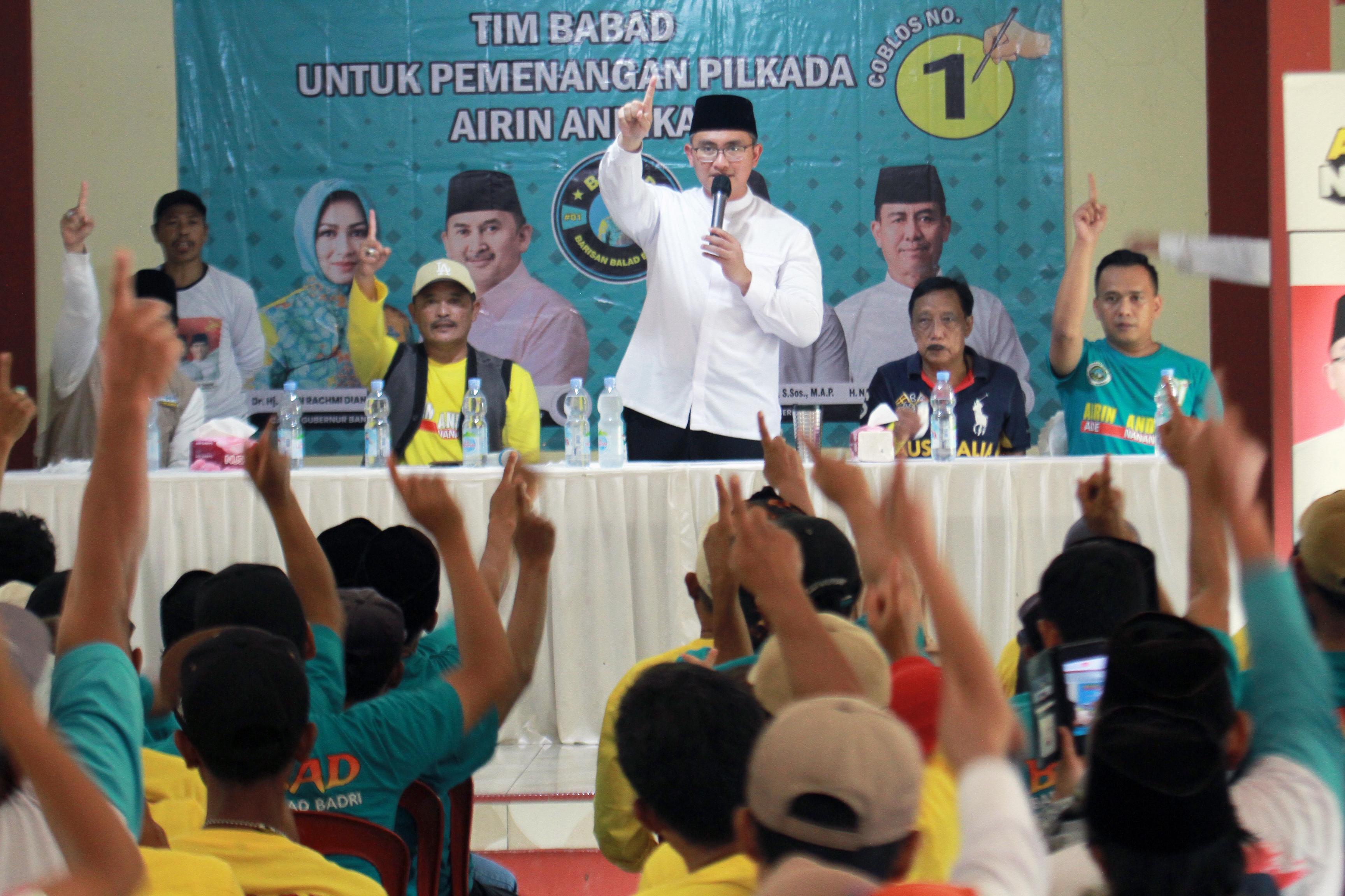 Sebelumnya pada acara yang dihadiri oleh ratusan orang itu dibacakan deklarasi dukungan relawan Babad untuk Andika-Nanang dan Airin-Ade. Dalam deklarasinya relawan Babad menyatakan kesiapan mereka untuk mensosialisasikan nomor urut kedua pasangan tersebut yang masing-masing mendapat nomor urut 1 dari KPU Kabupaten Serang dan KPU Provinsi Banten.