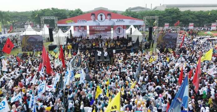 PASANGAN Calon Bupati-Wakil Bupati Serang Andika Hazrumy-Nanang Supriatna menggelar kampanye akbar di lapangan Modernland Cikande, Kabupaten Serang, Minggu (17/11/2024). Tidak hanya kemeriahan suasana kampanye, selawat asyghil menggema berulangkali dilantunkan puluhan ribu massa yang hadir.