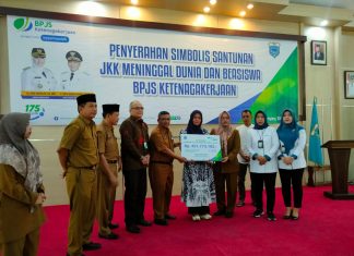 BADAN Penyelenggara Jaminan Sosial (BPJS) Ketenagakerjaan Kabupaten Pandeglang, menunaikan pembayaran santunan kepada masing-masing hak Ahli Waris Tenaga Kesejahteraan Sosial Kecamatan (TKSK) Kemensos RI Dinas...