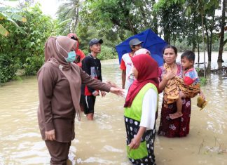 SELESAI cuti, Bupati Irna Narulita langsung terjun ke lapangan meninjau masyarakat yang rumahnya terendam banjir di beberapa kecamatan, Senin (07/12/2020).