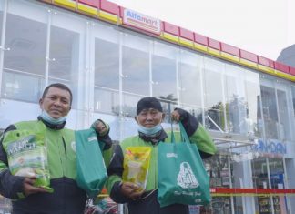 Alfamart Salurkan Bantuan Sembako untuk Mitra Gojek
