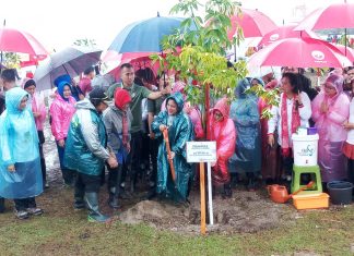 IBU Negara Republik Indonesia, Iriana Joko Widodo melakukan penanaman pohon mangrove tepatnya di pantai kawasan PLTU Desa Margasana Kecamatan Pagelaran, Senin (11/03/2019).