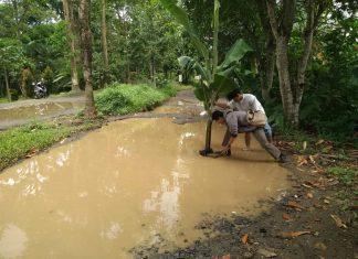 Belasan Tahun Tak Dibangun, Jalan di Sindangresmi Ditanami Pohon Pisang