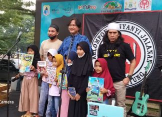 KOMUNITAS Kelompok Penyanyi Jalanan (KPJ) Rangkasbitung, menggelar acara buka puasa bersama dan santunan anak yatim dan kaum dhuafa di Plaza Lebak, Sabtu (30/4/2022).
