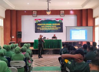 DALAM upaya mencegah terjadinya pelanggaran dan meningkatkan kesadaran hukum, Kodim 0601/Pandeglang bersama Kumdam III/Siliwangi, menggelar acara penyuluhan hukum.