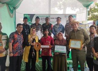 PEMBERIAN Program Hibah Rumah Layak Huni untuk masyarakat tak mampu dari Koperasi Syariah Benteng Mikro Indonesia (BMI) milik salah seorang warga di Kampung Pade,...