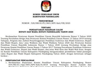 Pengumuman Pendaftaran Bakal Pasangan Calon Bupati dan Wakil Bupati Pandeglang Tahun...