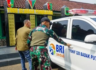 Yonif 320 Badak Putih Menerima Bantuan Ambulance dari BRI Pandeglang