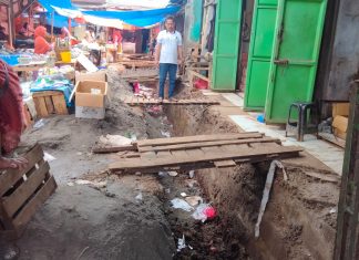 Terbengkalai, Ratusan Pedagang Keluhkan Proyek Drainase di Pasar Badak Pandeglang