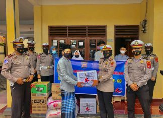 MENJELANG Hari Ulang Tahun (HUT) Polisi Lalulintas (Polantas) ke-66, Personel Satuan Lalulintas Polres Pandeglang menggelar Bakti Sosial (Baksos) dengan membagikan 30 paket sembako kepada...