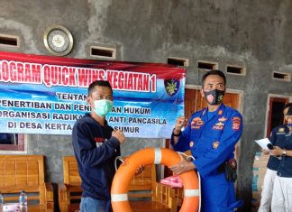SATUAN Polisi Air (Satpolair) Polres Pandeglang memberikan pemahaman tentang penertiban dan penegakan hukum bagi organisasi radikal dan anti Pancasila kepada masyarakat, di Desa Kertajaya,...