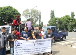 SOLIDARITAS Gerakan Masyarakat (Sigma) melakukan aksi unjuk rasa di halaman Pendopo Kabupaten Pandeglang, Rabu (12/02/2020).
