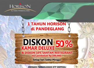 Dalam rangka satu tahunnya di Kabupaten Pandeglang, Horison Altama Pandeglang memberikan promo spesial diskon 50 persen untuk dua orang pengunjung berdomisili Pandeglang.