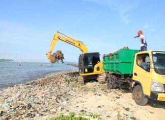 TUMPUKAN sampah yang menahun di pesisir Pantai Teluk, Kecamatan Labuan, Kabupaten Pandeglang, Banten, Kamis (02/08/2018) pagi akhirnya dibersihkan oleh pemerintah daerah setempat.