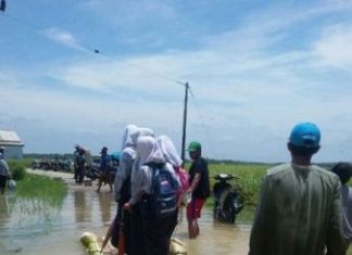 Jalan Terputus Akibat Banjir, Anak Sekolah di Patia Naik Rakit ke...