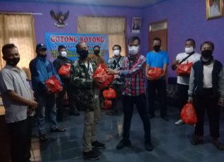 Bantuan berupa beras, mi instan, minyak goreng serta sarden itu dikemas dalam...