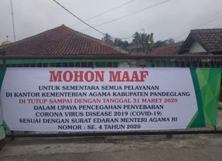 Dampak Covid-19, Kemenang Pandeglang Tutup Pelayanan