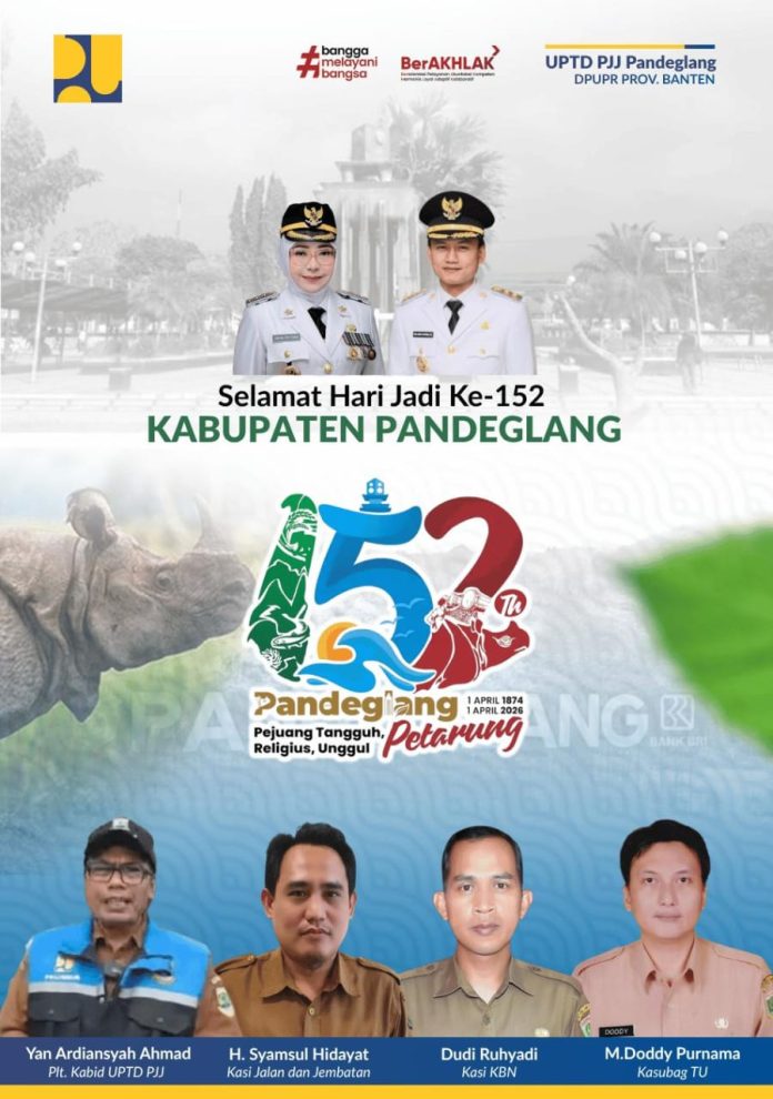 UPTD PJJ Kabupaten Pandeglang DPUPR Provinsi Banten mengucakan Selamat Hari Jadi Ke-152 Kabupaten Pandeglang